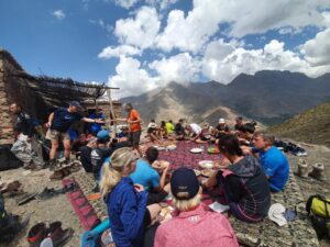 The trip began with the departure to Marrakesh, including transfers, accommodation and meals during the trek, luggage transport by mules and medical care.